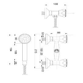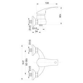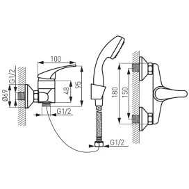 • Przyłącza: mimośrodowe G 1/2, rozstaw 150 ± 20 mm