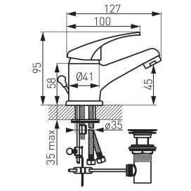 • Zasięg wylewki: 156 mm