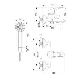 • Wąż natryskowy: 1500 mm w oplocie metalowym