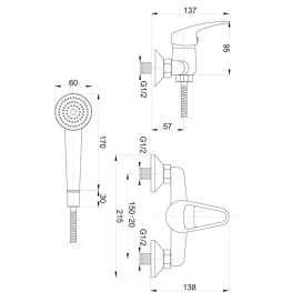 • Zestaw natryskowy z rączką ABS gotowy do montażu